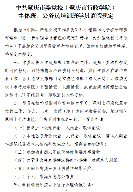 1.中共肇庆365bet在线网址_best365网页登录不上去_best365官网登陆(市行政学院)主体班、公务员培训班学员请假规定.doc