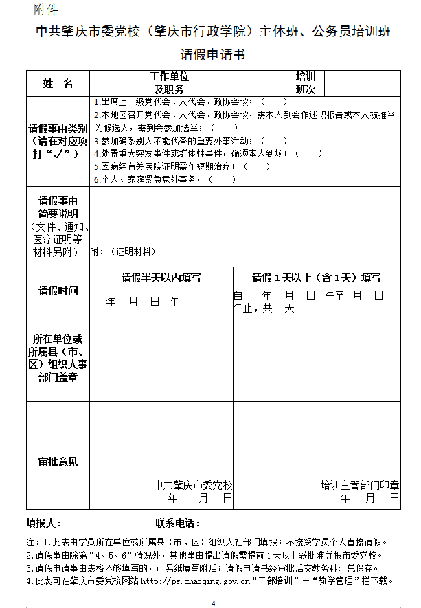 2.中共肇庆365bet在线网址_best365网页登录不上去_best365官网登陆(肇庆市行政学院)主体班、公务员培训班请假申请书.doc